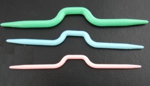 A cable needle is a short needle (usually the same size as the needles you are using to knit the main body of your jumper) with points at both ends. Some cable needles are straight and others have a 'bump' in the center of the needle. I generally use a straight cable needle, but some knitters prefer the other type as the bends in the needle help to keep the needle points out of the away while you are knitting the stitches on your main needle.