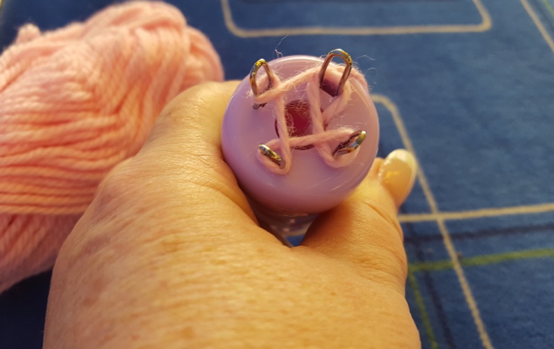 To 'cast on' wrap your wool around each peg as shown in the image.