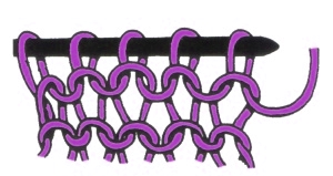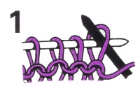 |  | Using the needle in your right hand, draw the yarn through the stitch on the left hand needle. |