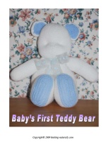 My Baby's First Teddy Bear pattern is designed to be knitted Patons Feathersoft 4 ply on 3.25mm knitting needles. Patons Feathersoft is no longer available as it has been discontinued, but you can substitute with any good 4 ply yarn.