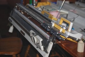 Whenever I have to do any straight or plain knitting I tend to use one of the machines. As I said I have two, one is a bulky knitter that I use for 8, 10 and 12 ply yarn, and the other is for fine work, usually a 4 or 5 ply.